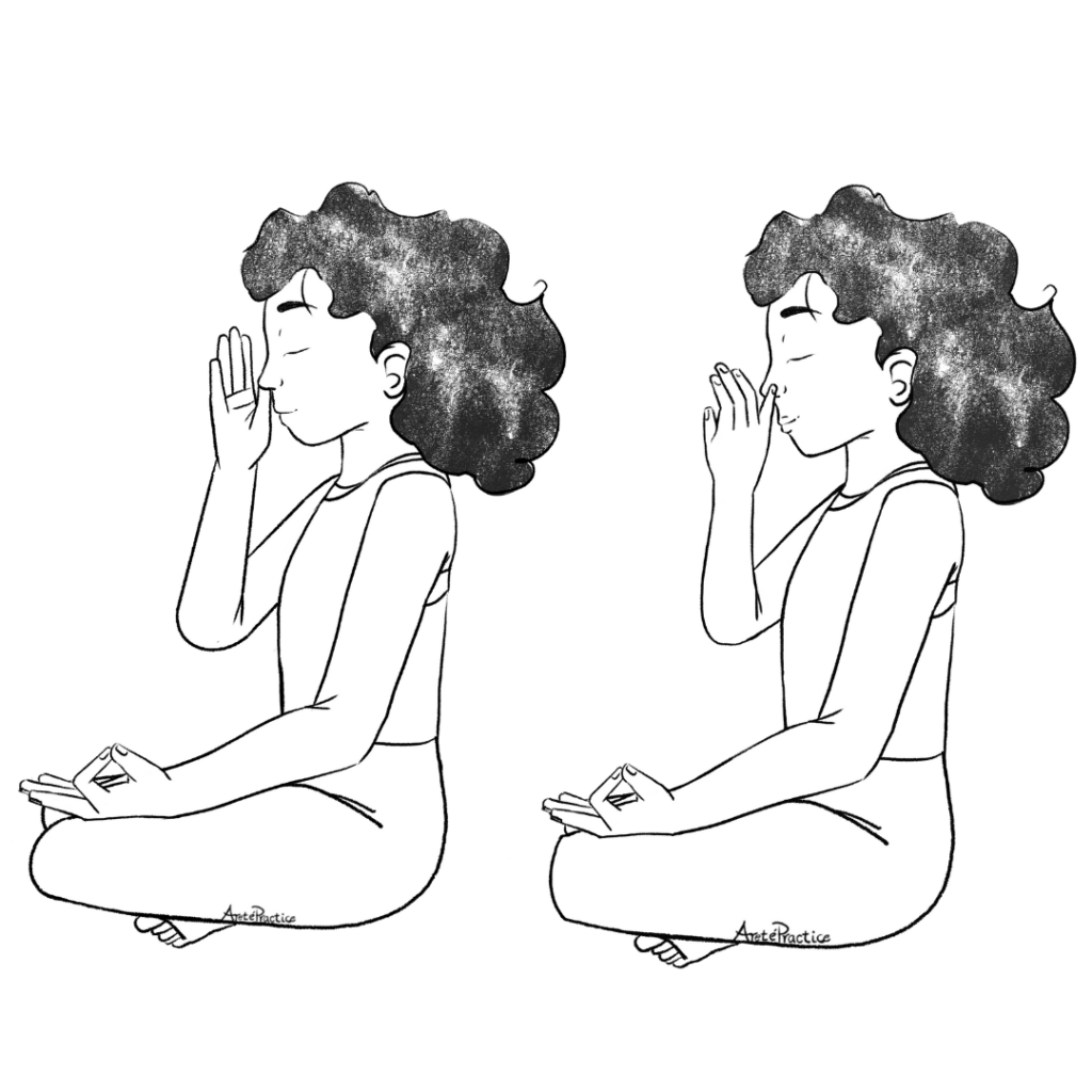 Movimiento y Respiración: realiza la respiración nasal alterna como en el Ejercicio 3, pero empieza a inhalar con la fosa nasal izquierda y exhala por la derecha.