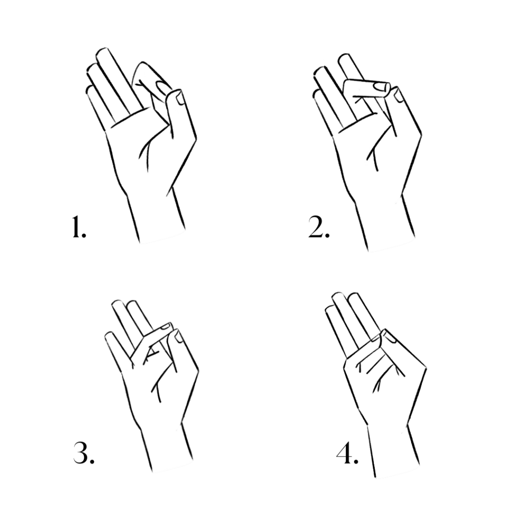 Continue for 7 minutes in each of the four mudras for a total of 28 minutes.