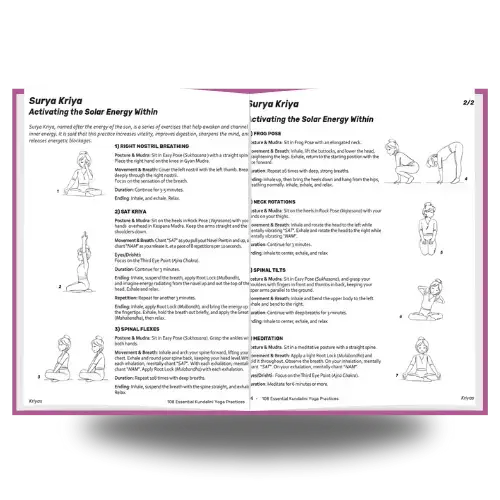 Deepen your practice with this beautifully designed, printable manual featuring 108 kriyas, meditations, and breathwork techniques.